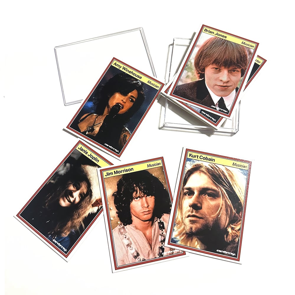 This exclusive 9-card set pays tribute to some of the most iconic and influential musicians and artists who became part of the tragic yet mythologized "27 Club" — a group of talents who all died at the age of 27, leaving behind timeless legacies and haunting what-ifs.